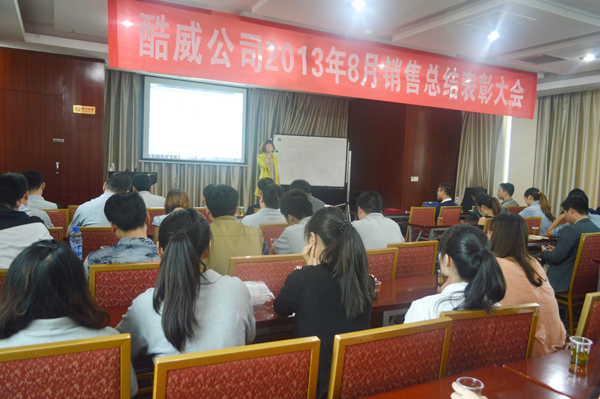 9月12日,酷威公司8月份銷(xiāo)售總結(jié)會(huì)議如期舉行,酷威總部及分公司的全體銷(xiāo)售人員以及部分行政人員參加會(huì)議。這次會(huì)議由公司內(nèi)訓(xùn)和月度銷(xiāo)售總結(jié)表彰兩部分組成。